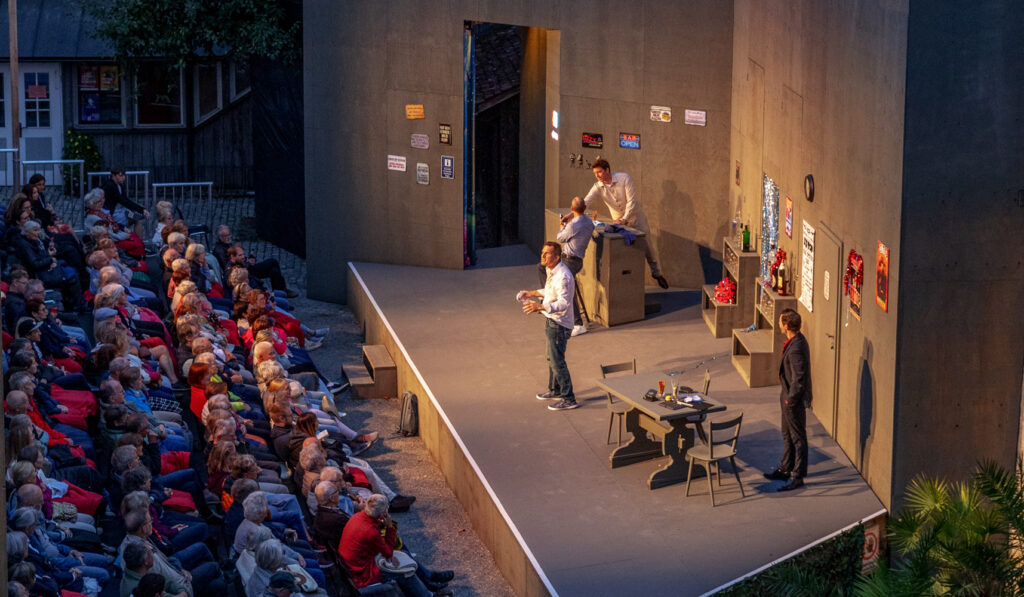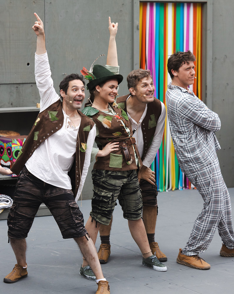 Regie Abendstück: Petra Wintersteller // Regie Familienstück: Daniel Witzke // Kostümbild: Diana Leist-Keller, Erwin Hecker (Assistenz) // Bühnenbild: Ingo Bracke // Regieassistenz/Spielleitung, Choreographie Tanzszenen: Johanna Huisbauer // Choreographie Fechtszenen: Dennis Wilkesmann // Bühnenaufbauten: Bauhof Wangen // Fotos: Stefanie Zehender // Aufführungsrechte: Vertriebsstelle und Verlag Deutscher Bühnenschriftsteller und Bühnenkomponisten GmbH